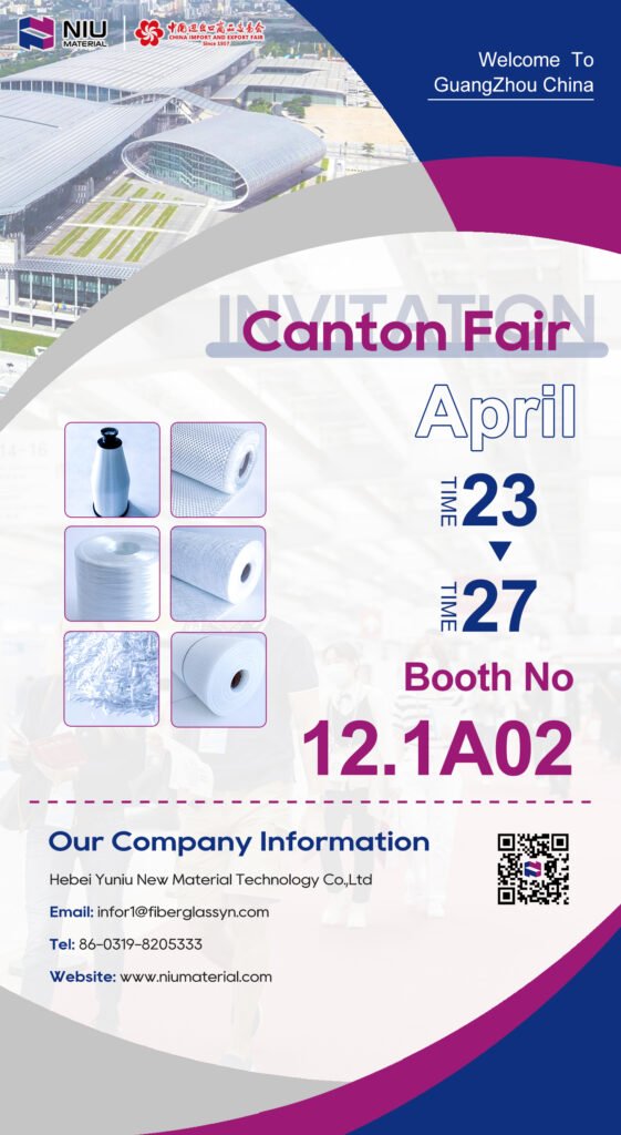 As one of the world’s largest and most comprehensive trade fairs, the Canton Fair (China Import and Export Fair) is a global international trade hub, connecting more than 25,000 exhibitors and millions of buyers from 210 countries and regions. It is the preferred platform for showcasing cutting-edge products, promoting business partnerships and driving cross-industry innovation. In 2025, Niumaterial, a leading fiberglass manufacturer with 20 years of manufacturing expertise and 12 years of export experience, will participate in the Canton Fair from April 23 to 27, 2025, booth number 12.1A02.