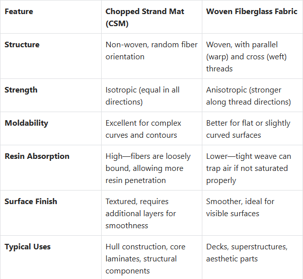 In boat building, the choice often comes down to the part’s geometry and performance needs. Hull bottoms, which face constant impact and need uniform strength, are perfect for CSM. Woven fabrics, on the other hand, might be used for decking where a cleaner finish is required. Many builders use a combination of both to optimize strength and cost—a strategy our technical team is happy to help clients refine.